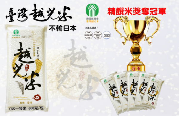 照片標示「稻米達人競賽」冠軍之越光米,強化米品來源、品質感與信任感。